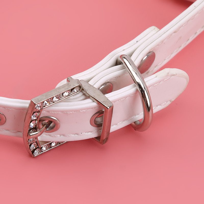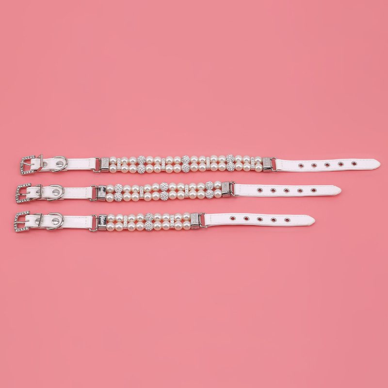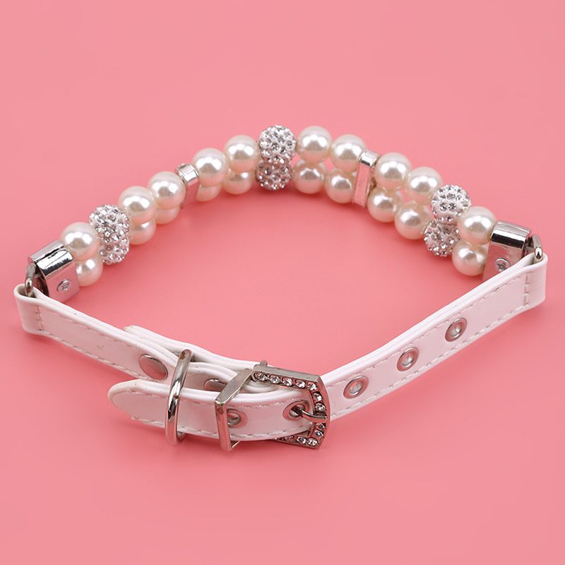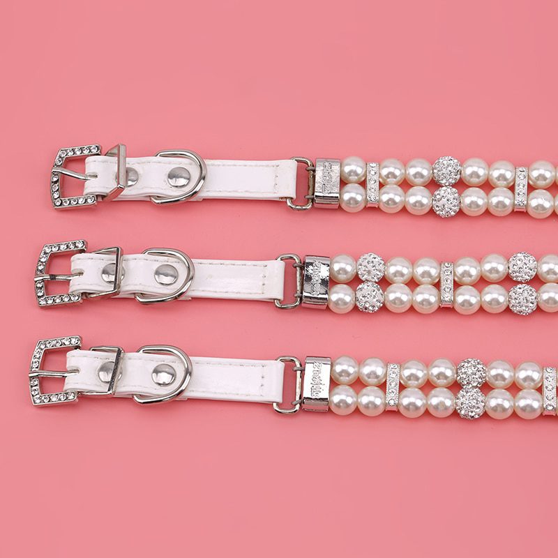 2020 Hot Sale Pet Dog Cat Collars Bling Rhinestones Adjustable Leather Necklace Pearl Studded Collar For Teddy Dog Accessories